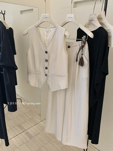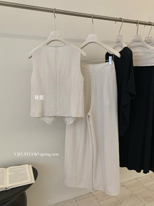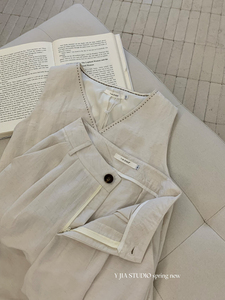 Y.JIA テンセルリネンヘビーアーチ針不規則ボタンオールドマネースタイルベストカジュアルパンツ 9209