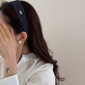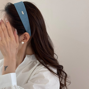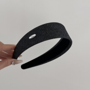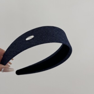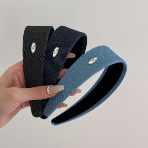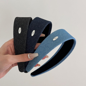 韓国版の新しいスタイルの古いレトロなデニムヘッドバンド女の子用シルバーラベルソリッドカラーヘッドバンド外出用多用途シンプルでファッショナブルな帽子