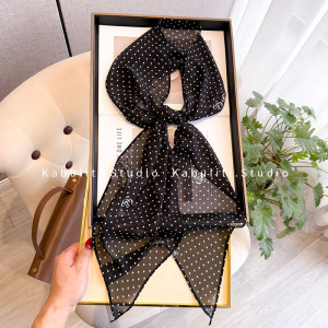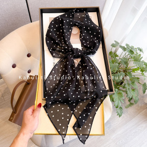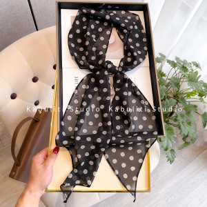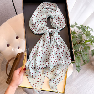 波点小长条细窄丝巾女扎头发带丝带飘带护颈围脖子领带腰带薄围巾