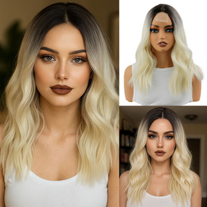 假发女TEMU金色欧美齐肩中分短卷发Fiber小手织non-lace头套批发