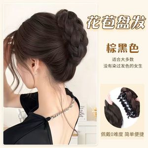 假发丸子头假发纹理感麻花辫发包抓夹仿真发增发量盘头麻花假发包
