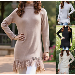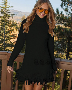 2025 秋冬ヨーロッパとアメリカのクロスボーダーハンドメイドタッセルファッションドレス新しいアマゾンニットセーターハイネックセーター女性用