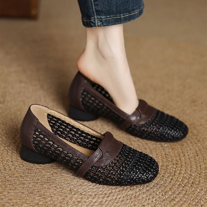 ラウンドトゥ、太いヒール、通気性があり疲れにくい、柔らかい表面の編み込み中空サンダル、女性用2025年新作マザーズシューズ、下駄、トレンディ