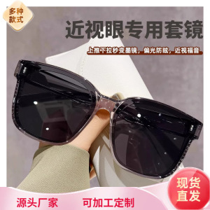 新しいスタイルのサングラスセット、男性と女性用の近視サングラス、運転用の特別な外装、サングラスをセットして使用でき、夏の日焼け止め用の大きなフレーム