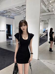 スリムで甘い黒のスカート、女性のサマードレス、ヒップカバー、スリムフィット、ショートスイート&スパイシースカート、ハイエンドカレッジスタイル