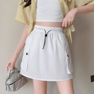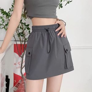 ヨーロッパとアメリカのストリートホットガール巾着弾性ウエスト作業服スカートレトロ夏痩身カレッジスタイルヒップカバーミディスカート