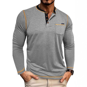 2025 クロスボーダーメンズ秋冬大きいサイズ対外貿易メンズ長袖 Tシャツヨーロッパとアメリカのメンズヘンリーシャツ 4 つボタントップ