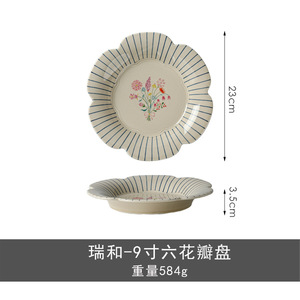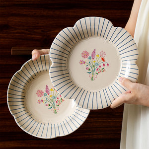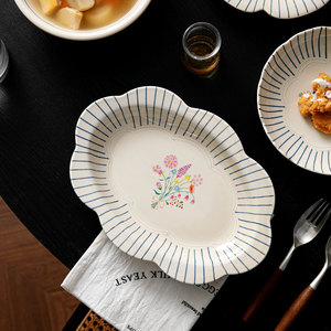 下絵付けレトロ花びらプレートフランス陶器食器家庭用ボウルとプレートセットボウルと食器丼高価値