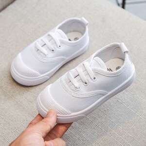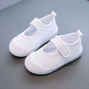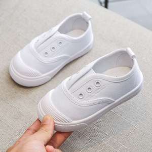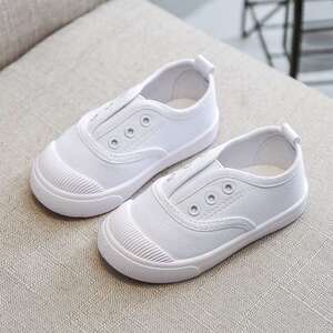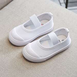 キャンパス白靴春と秋の子供のキャンバスシューズ幼稚園男女学生白い布靴ベビーソフトソール屋内