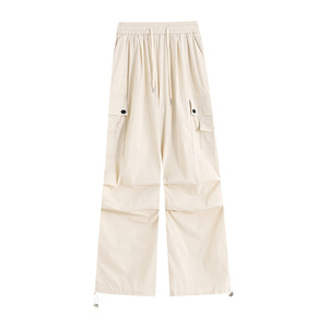 アメリカンピンクアイスシルク速乾オーバーオール女性の夏薄いハイウエストスリムストレートレッグワイドレッグスポーツパンツ