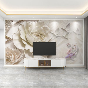 壁紙 3D 立体レリーフフランス花テレビの背景壁壁紙リビングルームの壁布寝室の壁布壁画