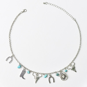 ヨーロッパとアメリカのクロスボーダーレトロウエスタンカウボーイスタイルのネックレスブレスレット古いターコイズメタルブルヘッドブーツジュエリー