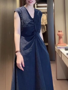 気質多用途ノースリーブ痩身ドレス女性の夏のデザインロングスカート襟ウエスト痩身ドレス