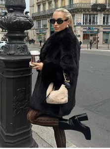 ヨーロッパとアメリカの新しい秋と冬の女性の模造キツネの毛皮のコート、暖かく環境に優しい毛皮のミッドレングスの厚いコート