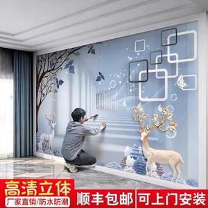墙纸3d立体壁画电视背景墙壁纸客厅家和影视壁布装饰墙布自粘