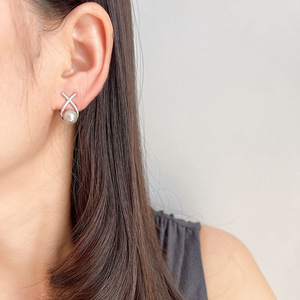 EH1304 シンプルなノンホールピアス クロスグレーパール 蚊取り線香 イヤークリップ イヤリング ライト 高級イヤリング イヤリング 卸売