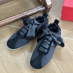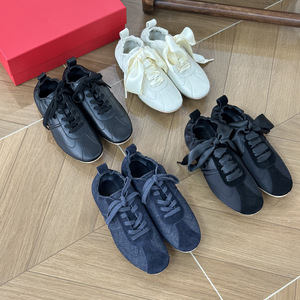 最高品質! 2025 春夏新作カジュアルバレエシューズシルクサテンリボン軽量通勤スニーカーフォレスト・ガンプ白靴