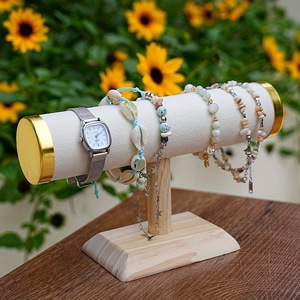 ジュエリーブレスレットディスプレイスタンド、T字型ベベルローブレスレットホルダー、無垢材ジュエリーディスプレイスタンド、ハンド