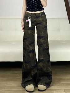 女性用迷彩ジーンズ、夏、アメリカンレトロホットガール、ローウエストフレアパンツ、スリムフィット、ドレープ、マイクロフレア馬蹄パンツ