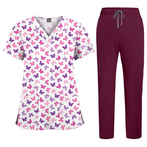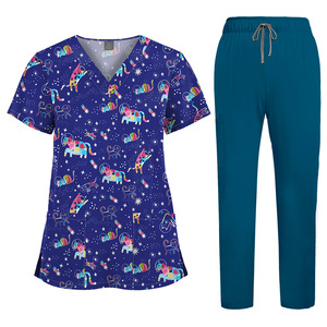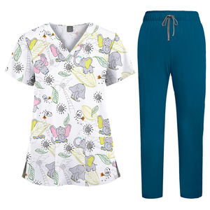 売れ筋新製品プリント手洗い服無地パンツスーツナース服医師病院クリニック作業服 2 点セット