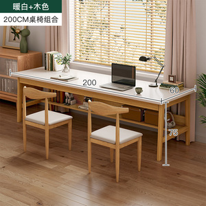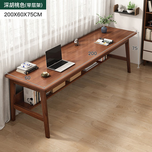 加长2米2双人书桌家用实木腿桌子工作台办公电脑桌窄形长条写字桌