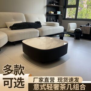 イタリアンクリームスタイルのライト高級スレートモダンスクエアリビングルームコーヒーテーブルハイエンドシンプルホームティーテーブル小さなアパートの組み合わせ