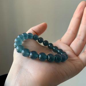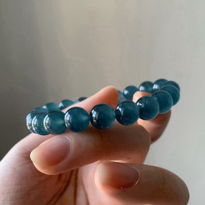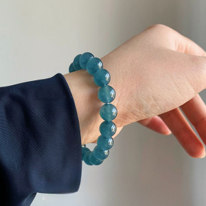 原创手作天然A货翡翠手链危料蓝水大颗粒手串晴水蓝翡翠圆珠男女