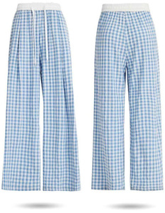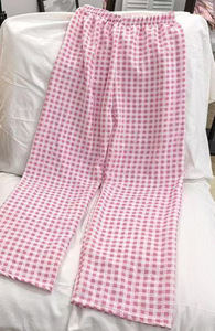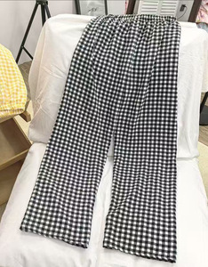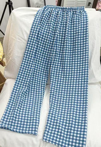 ランニングボリュームチェック柄プリントワイドレッグパンツレディースカジュアル夏薄いパジャマパンツウォーキングパンツルーズストレートホームパンツズボン