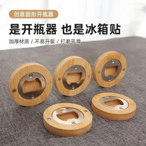 クリエイティブ竹ラウンドボトルオープナー冷蔵庫マグネットビールオープナー立体マグネット磁気吸引家庭用ビールボトルオープナー