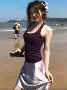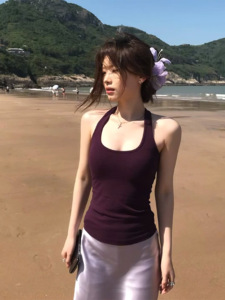 Pure Desire Hot Girl パープル ホルターネック インターロック キャミソール レディース 夏 リゾート スタイル スリムフィット 多用途 アウター トップ