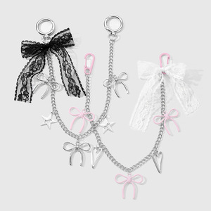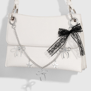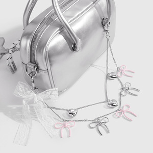 新しい y2k 個性甘い高価値シルバーチェーンリボンハートスターレースリボン DIY バッグペンダント
