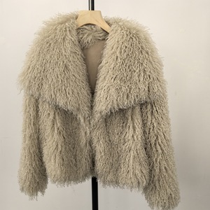 クロスボーダー AliExpress 女性の冬ショートラーペルフェイクファーシェイプビーチウールファーコート女性の毛皮のコート