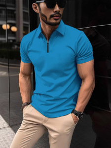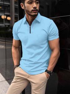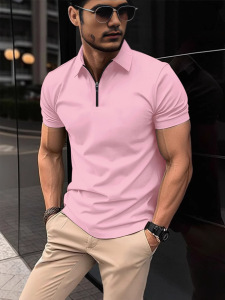 2025 ホットスタイル夏の卸売ルーズカジュアルスタイルビジネスジッパー 3D デジタル印刷ラペルメンズポロシャツ
