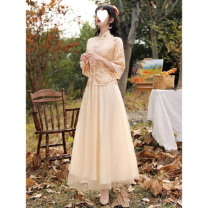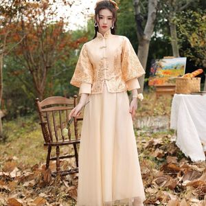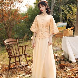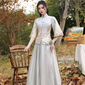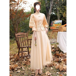新しい中国風のブライズメイドドレス、ライトラグジュアリーニッチハイエンドシャンパンカラー改良されたツーピーススーツシスタードレス毎日着用可能