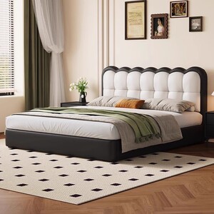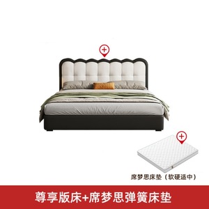 【黑白色】皮床+20cm舒适弹簧席梦思床垫