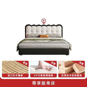 法式奶油风真皮床女生主卧1.8米双人床小户型儿童泡芙软包床