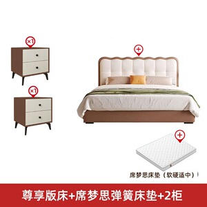 【棕白色】皮床+20cm舒适弹簧席梦思床垫+2柜