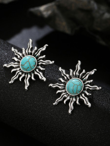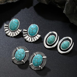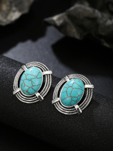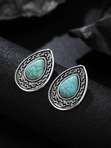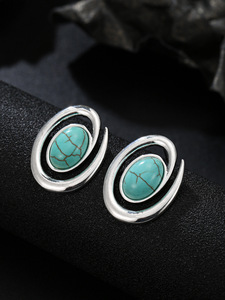 欧美跨境复古绿松石耳环轻奢高级感耳饰设计感小众耳饰女耳坠耳圈