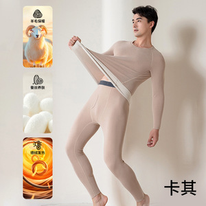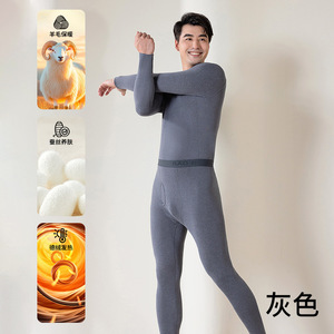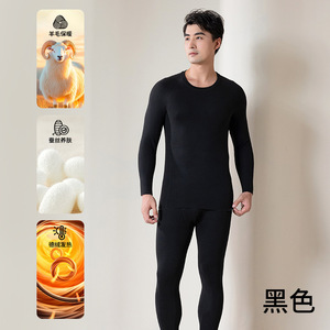 デロン暖かいスーツ、快適で断熱性のあるラウンドネック、新しい加熱と厚みのある膝パッド、秋服と長ズボン、男性用の大きいサイズの下着