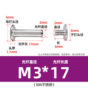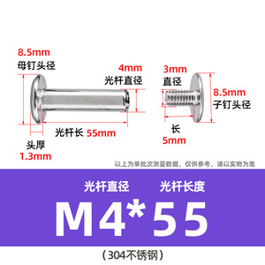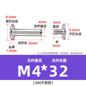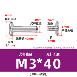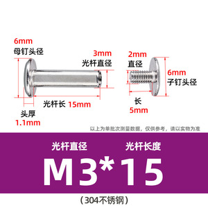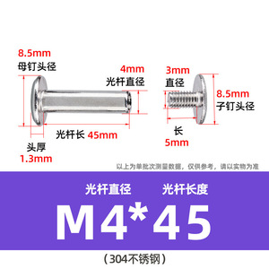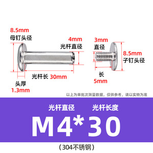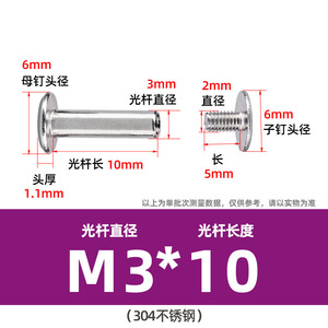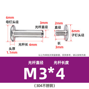 304ステンレス鋼製両頭ネジ、十字型会計用留め具、合板用リベット、平頭M2M3M4、在庫あり