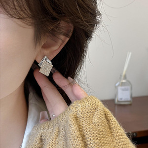 S925纯银双层方形耳钉女日韩版简约小巧设计高级感肌理耳环送闺蜜