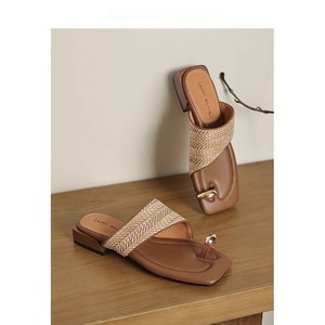 バケーションバージョン~スカートとトングトゥのソフトソールローマンサンダルを合わせた美しいフレンチボヘミアンストロー、女性が外で履ける