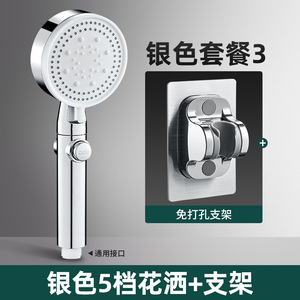【银色3】增压大出水花洒+免打孔支架