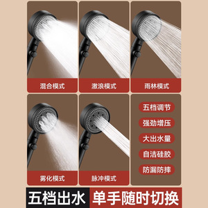 一键止水黑色五档增压淋浴花洒喷头浴室淋浴洗澡手持花洒一整套