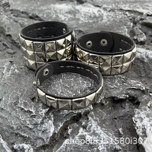 ヨーロッパとアメリカの新しいスタイルのハンドジュエリー、誇張されたパンク牛革ブレスレット、メーカー供給卸売メンズブレスレット