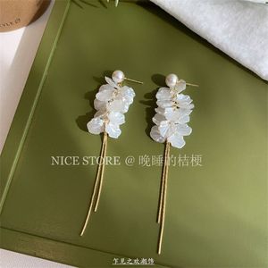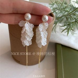 夜更かしのキキョウ「Qili Xiang」フォレストホワイトパールペタルピアスホリデー万能ニッチインピアス