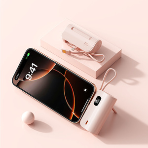 新しいダブルプラグカプセルミニ内蔵ワイヤーパワーバンク、コンパクトでポータブルなモバイル電源ギフトカスタムロゴ