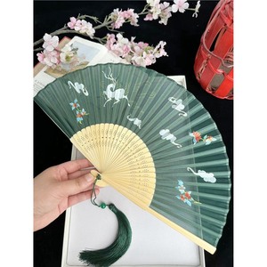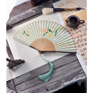 女性ファンレトロスタイル折りたたみギフト扇子漢服ファン夏ポータブル小さなライトグリーンダンスファンチャイナドレス夏