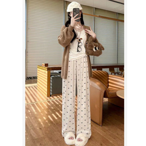 秋冬新作もち米プリントリボンレイジースタイル山本ワイドレッグパンツ小柄ハイウエストドレープカジュアルパンツ女性用