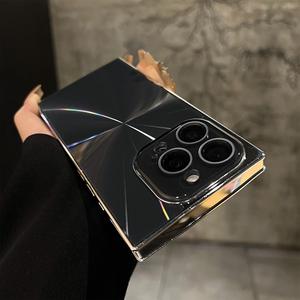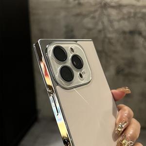 Apple 16 携帯電話ケース レンズホルダー スクエア電気メッキ オーロラ レーザー落下防止 iPhone15 保護カバー 14 に適しています。